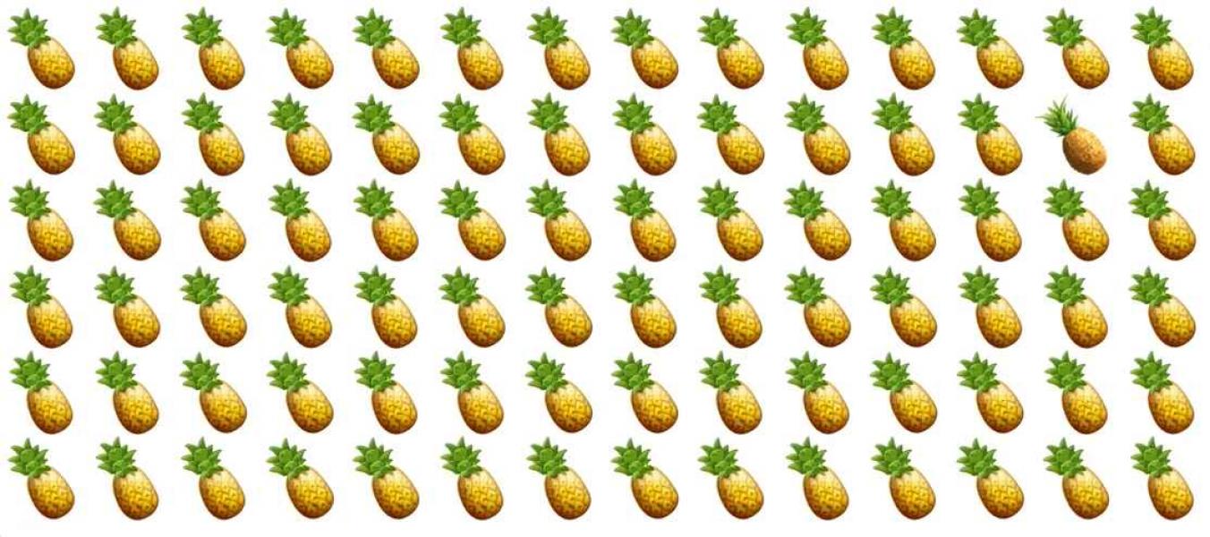 Bazen her birimiz evde veya işte biraz dikkatimizin dağılmasını isteriz. Bu gibi durumlarda bulmacaları çözebilirsiniz. Eğlenceli optik illüzyonlar beyninizi çalıştırmanıza ve biraz rahatlamanıza yardımcı olacaktır. Bu sefer özel bir ananas bulmanız gerekiyor.