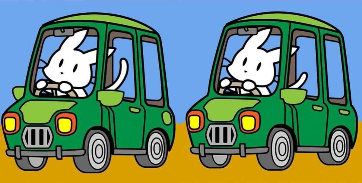 Eğlenceli ama en kolay olmayan bulmacayı çözmeye çalışın – arabayı süren bir tavşanı gösteren iki resimde aynı anda birkaç fark bulmanız gerekir.