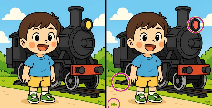 Peki bir sonraki mücadeleye hazır mısın? Lokomotifin yanında duran çocuğun iki resmine yakından bakın. İlk bakışta aynı görünebilirler ancak 3 küçük farkı gizlerler. Hepsini 29 saniyede bulabileceğinizi mi düşünüyorsunuz? Deneyin ve görme keskinliğinizi test edin!