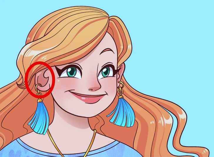 Çizimdeki hata kızın sol kulağının ters olmasıdır.